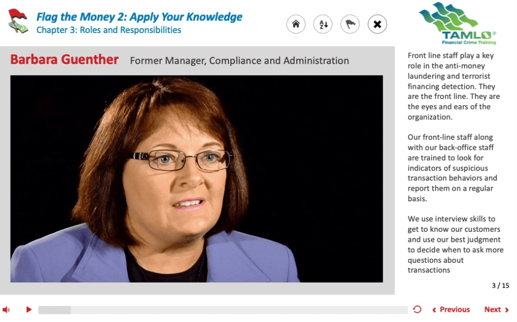 We believe storytelling is crucial for engaging learners and motivating behavioral change. That’s why we’ve built our award-winning training around stories that clarify challenging concepts and inspire employees to “up their game” when it comes to identifying suspicious transactions that might involve criminal activity.