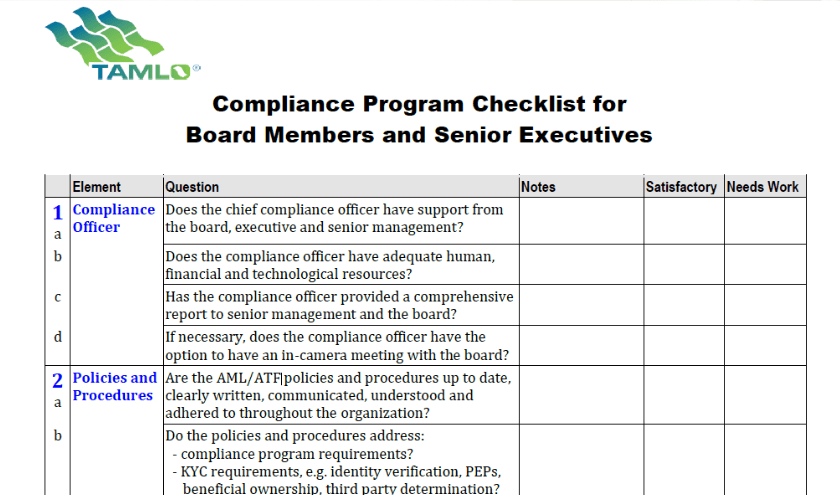 The Compliance Program Checklist provides a series of questions for the board and executives to ask the compliance officer during a periodic update.